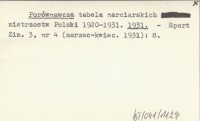 Porównawcza tabela narciarskich mistrzostw Polski 1920-1931. 1931
