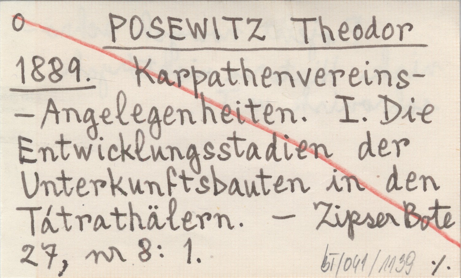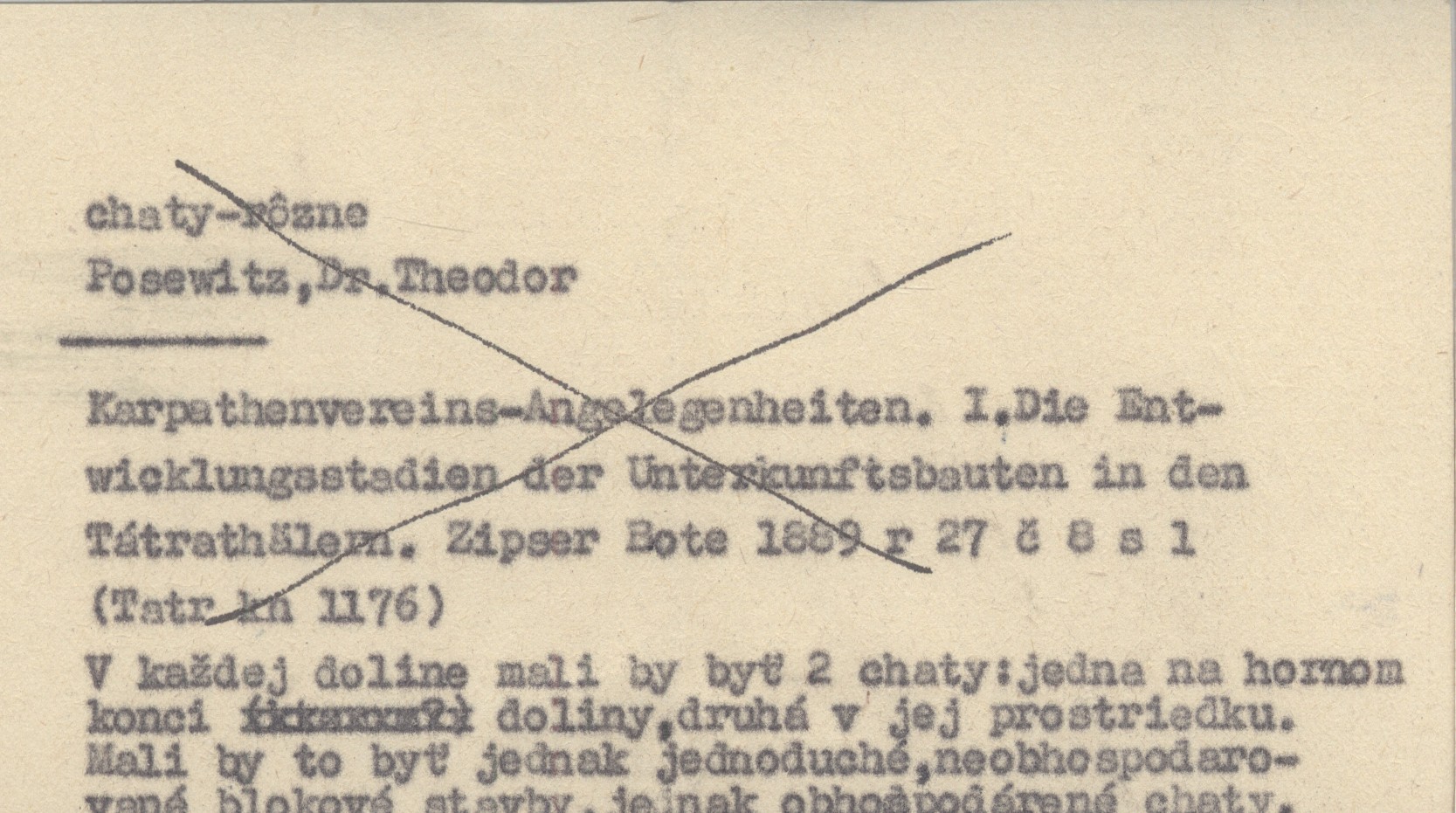 POSEWITZ Theodor 1889 Karpathenvereins-Angelegenheiten. I. Die Entwicklungsstadien der Unterkunftsbauten in den Tátrathälern.