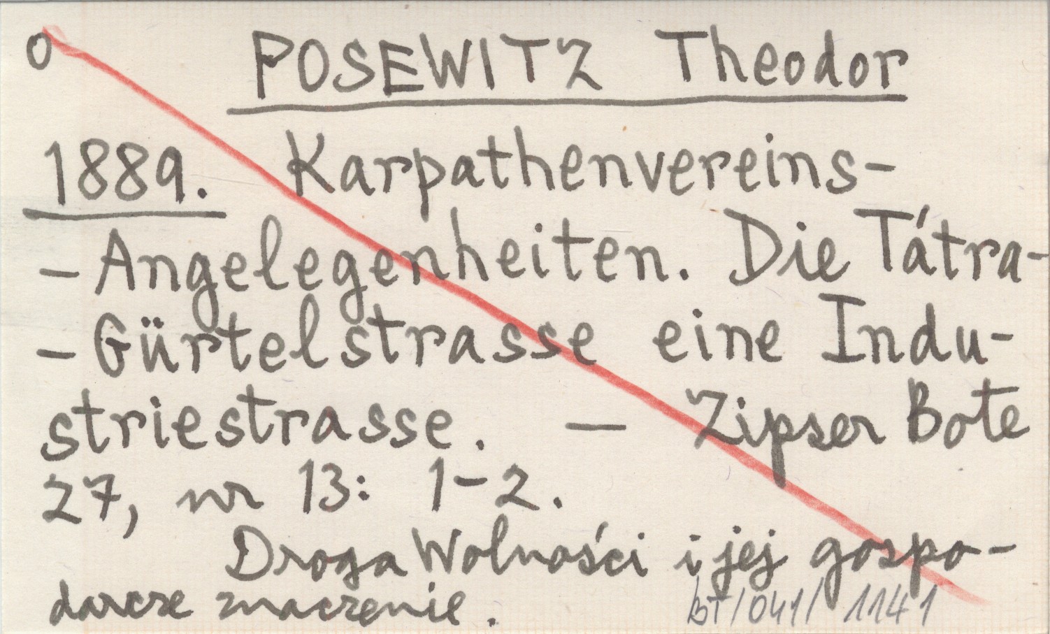 POSEWITZ Theodor 1889 Karpathenvereins-Angelegenheiten. Die Tátra-Gürtelstrasse eine Industriestrasse.