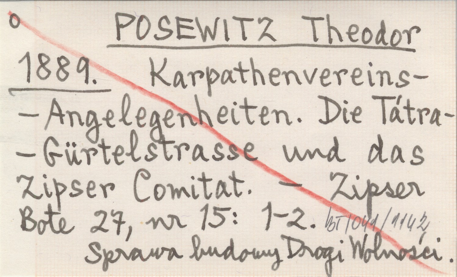 POSEWITZ Theodor 1889 Karpathenvereins-Angelegenheiten. Die Tátra-Gürtelstrasse und das Zipser Comitat.