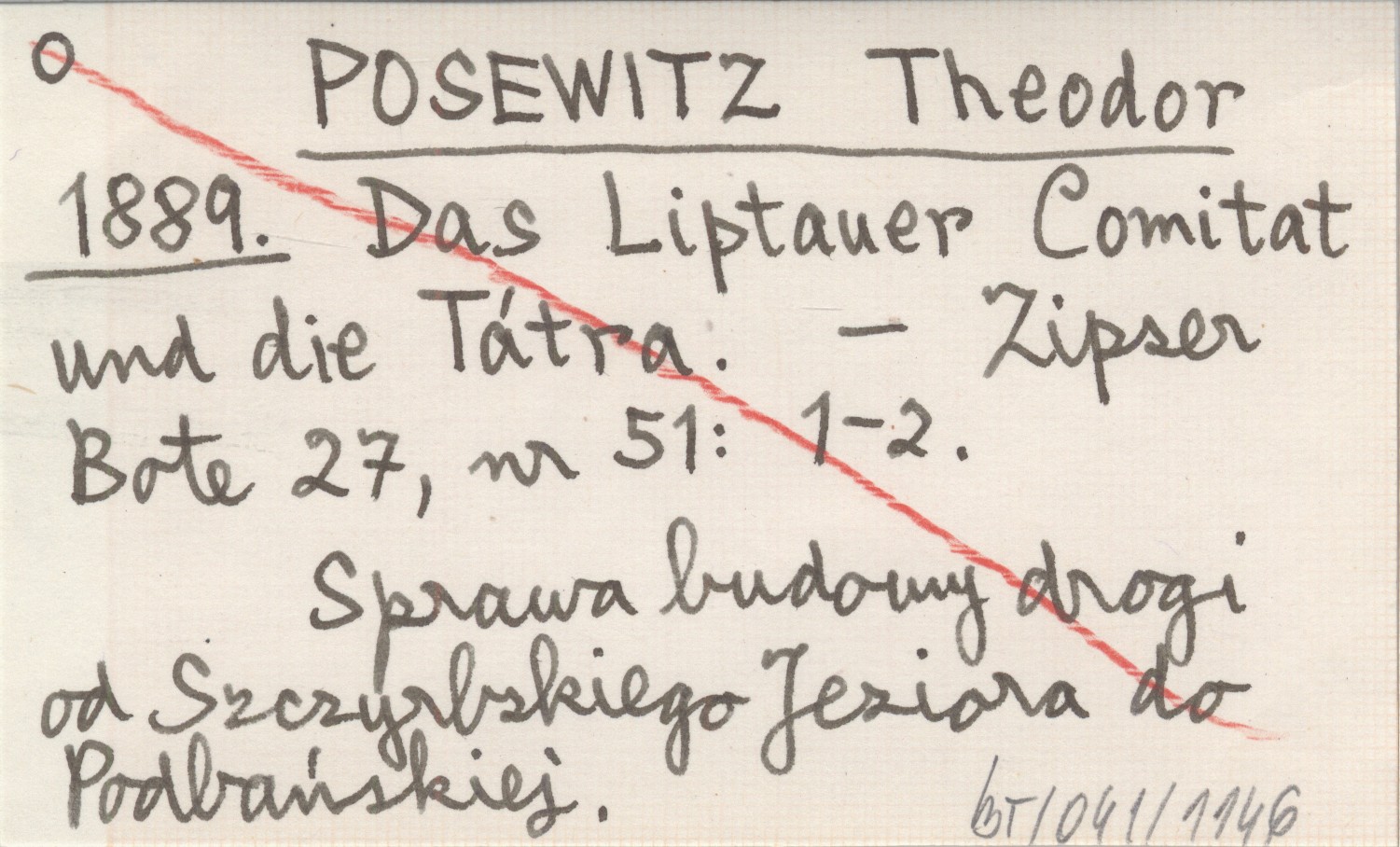 POSEWITZ Theodor 1889 Das Liptauer Comitat und die Tátra.