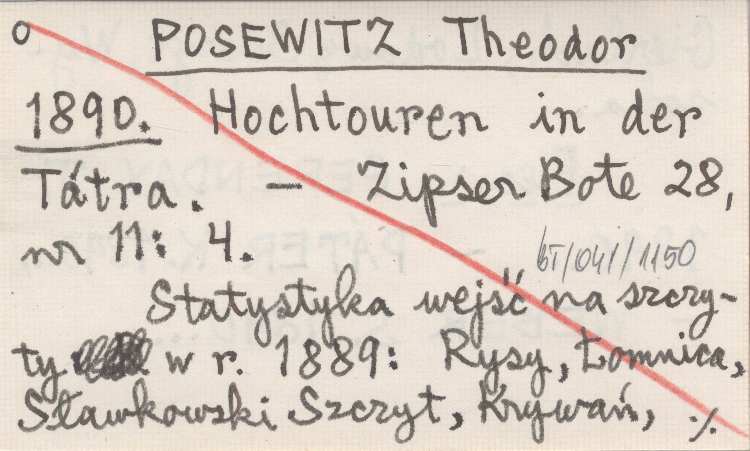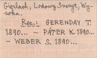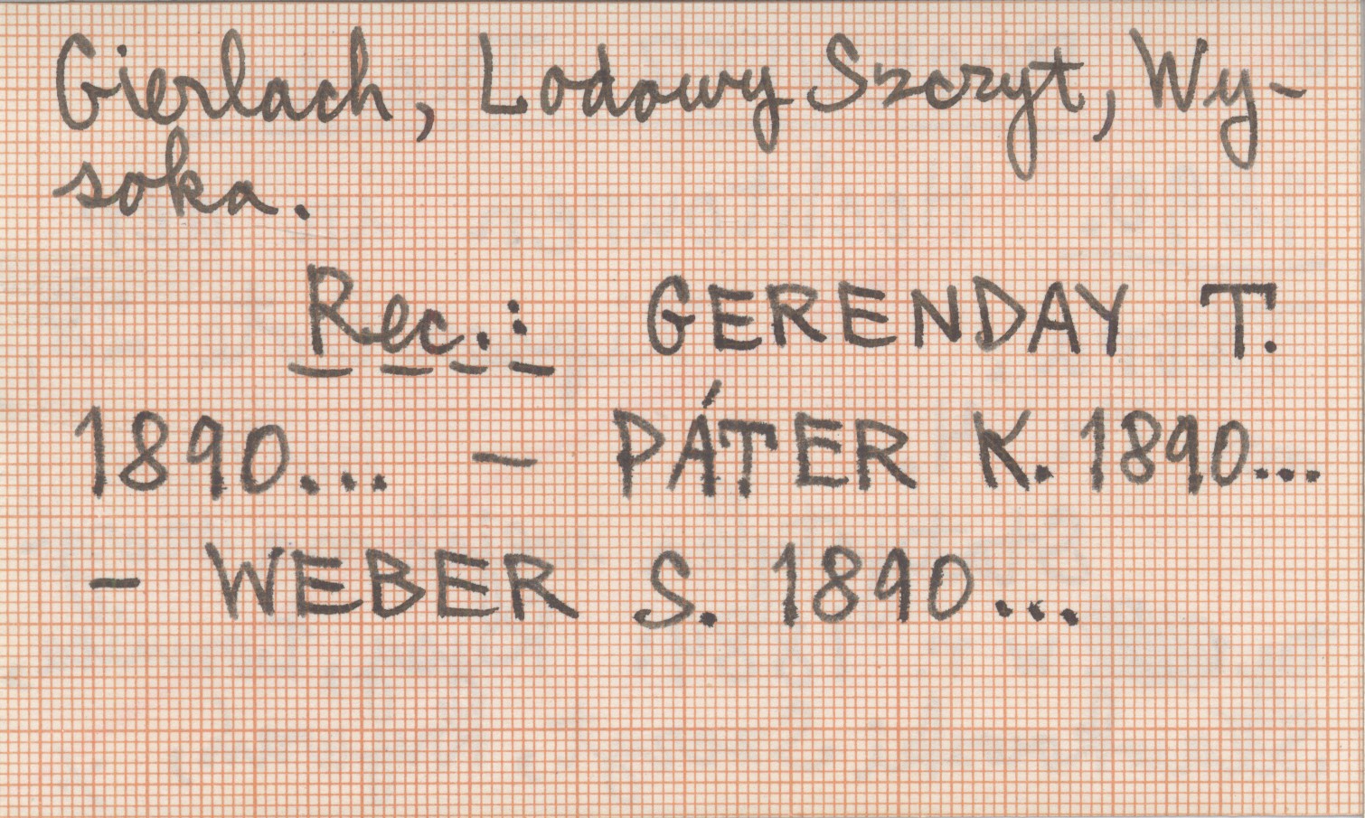 Zipser Bote, 28, nr 11: 4. Statystyka wejść na szczyty w r. 1889: Rysy, Łomnica, Sławkowski Szczyt, Krywań, Gierlach, Lodowy Szczyt, Wysoka. REC: GERENDAY T. 1890... ; PÁTER K. 1890... ; WEBER S. 1890... ;