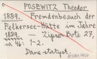 POSEWITZ Theodor 1889 Fremdenbesuch der Felkersee-Hütte im Jahre 1889.