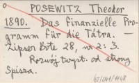 POSEWITZ Theodor 1890 Das finanzielle Programm für die Tátra.