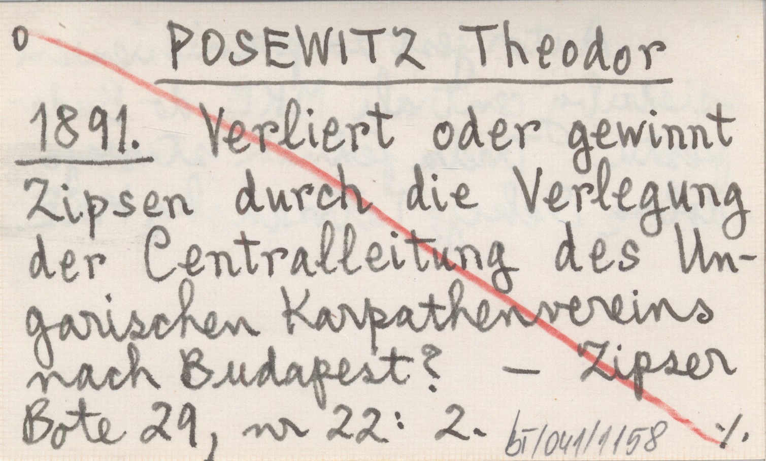 POSEWITZ Theodor 1891 Verliert oder gewinnt Zipsen durch die Verlegung der Centralleitung des Ungarischen Karpathenvereins nach Budapest?