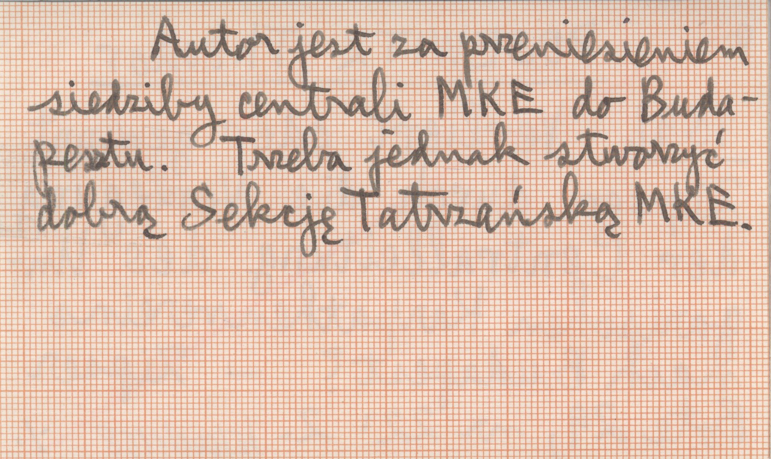 Zipser Bote, 29, nr 22: 2. Autor jest za przeniesieniem siedziby centrali MKE do Budapesztu. Trzeba jednak stworzyć dobrą Sekcję Tatrzańską MKE.