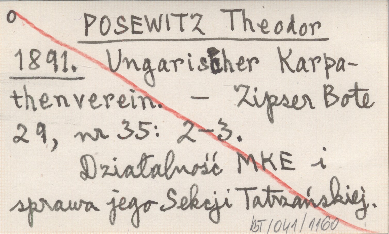 POSEWITZ Theodor 1891 Ungarischer Karpathenverein.