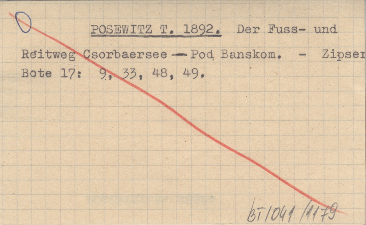POSEWITZ T. 1892 Der Fuss- und Reitweg Csorbaersee-Pod Banskom.