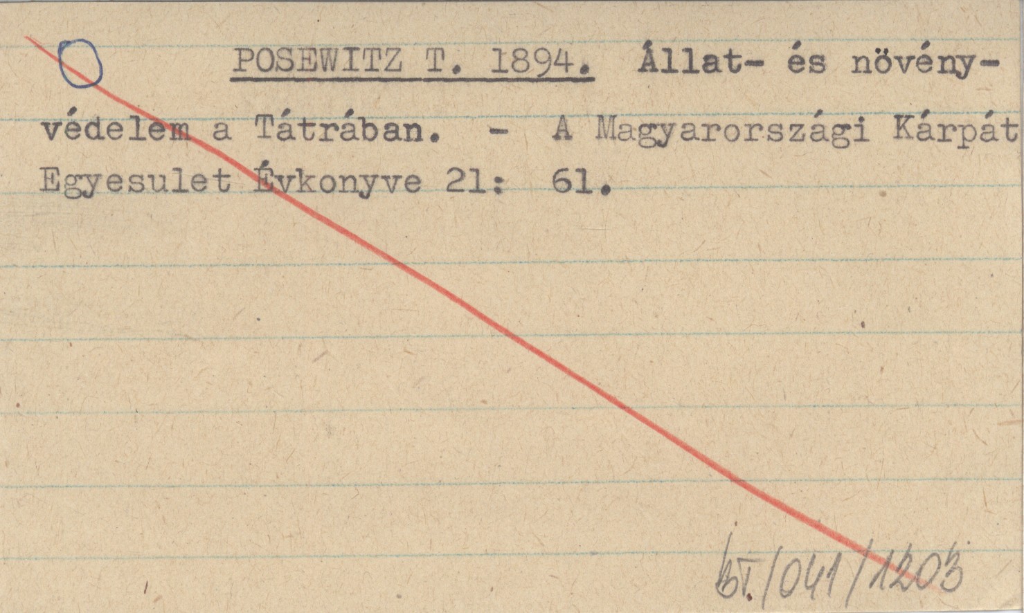 POSEWITZ T. 1894 Állat-és növényvédelem a Tátrában.