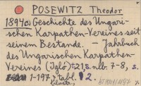 POSEWITZ Theodor 1894 c Geschichte des Ungarischen Karpathen-Vereins seit seinem Bestande.