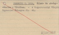 POSEWITZ T. 1894 Állat-és növényvédelem a Tátrában.