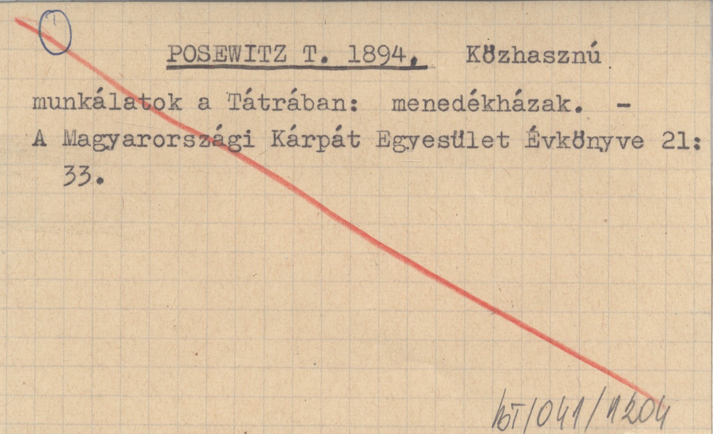 POSEWITZ T. 1894 Közhasznú munkálatok a Tátrában: menedékházak.