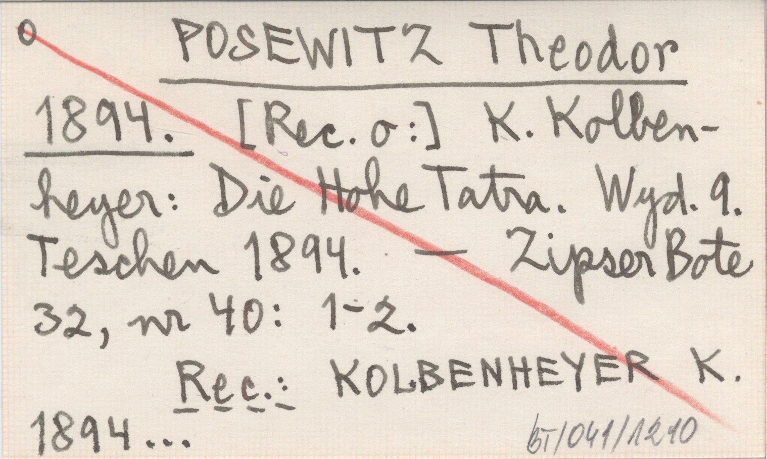 POSEWITZ Theodor 1894 [Rec. o:] K. Kolbenheyer: Die Hohe Tatra. Wyd. 9 Teschen 1894.