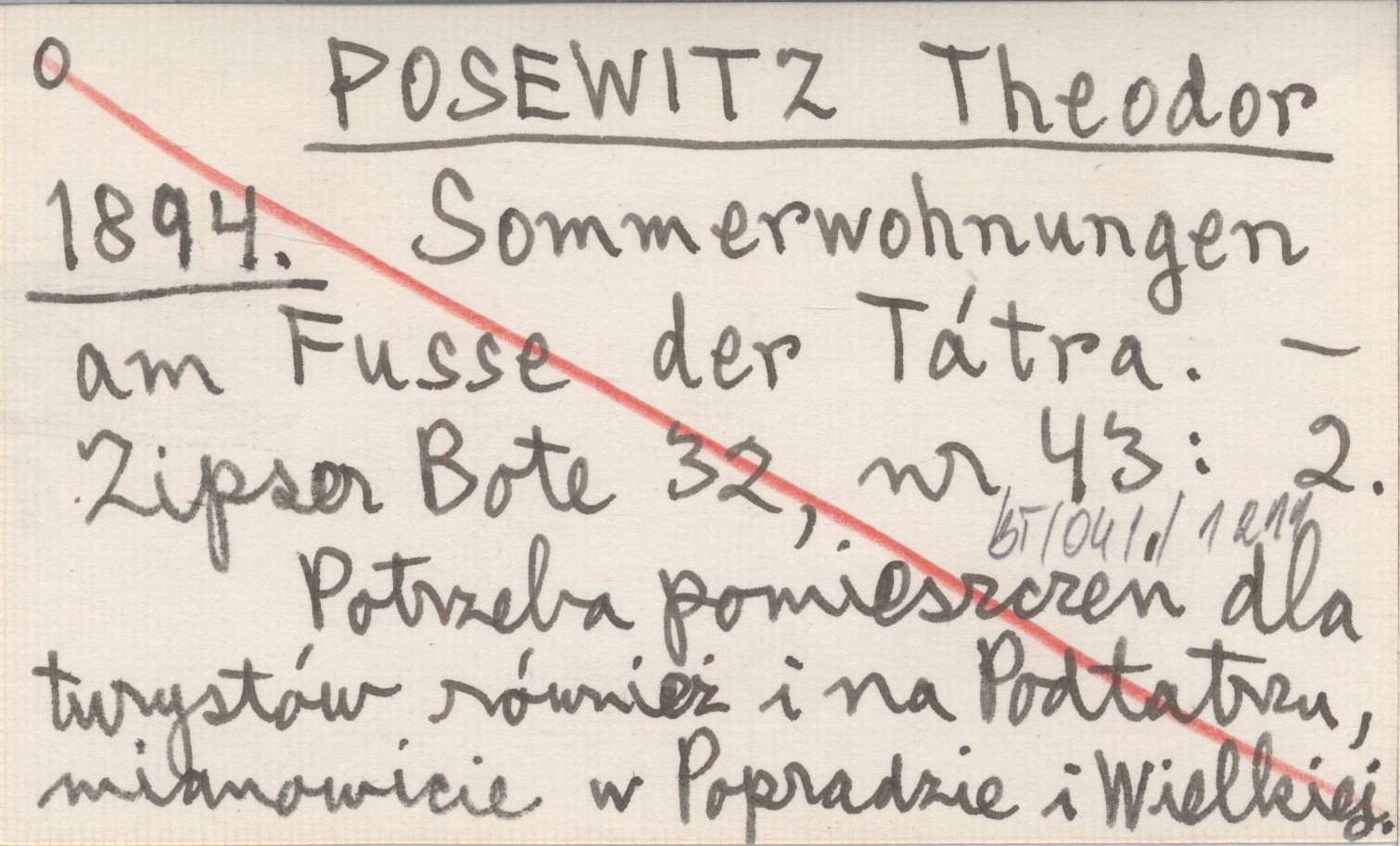 POSEWITZ Theodor 1894 Sommerwohnungen am Fusse der Tátra.