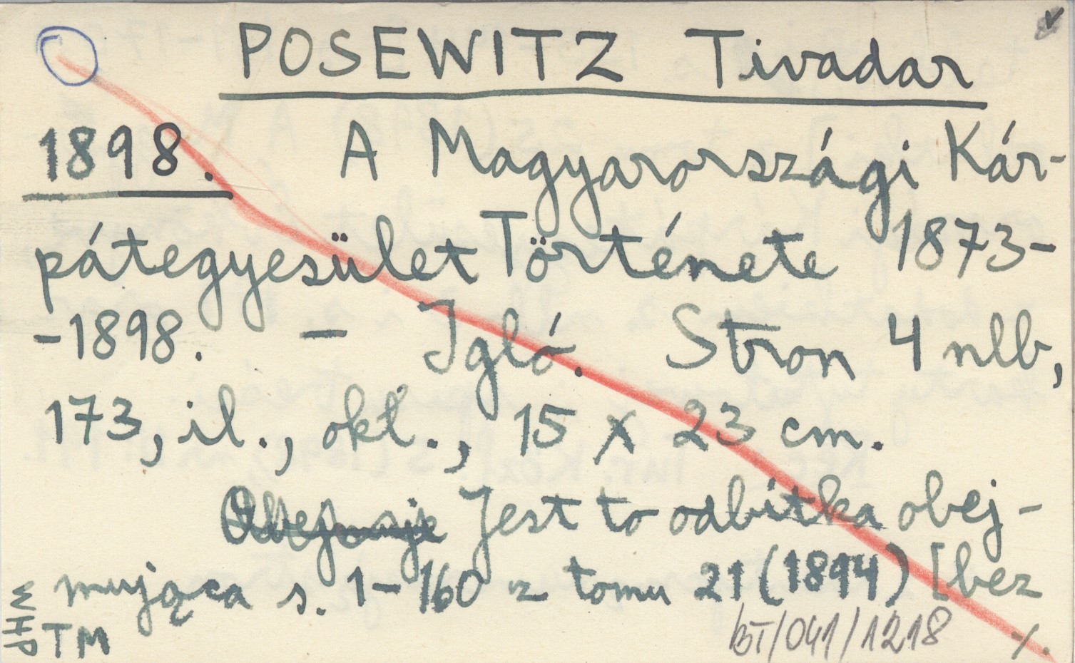 POSEWITZ Tivadar 1898 A Magyarországi Kárpáteguesület Története 1873-1898.