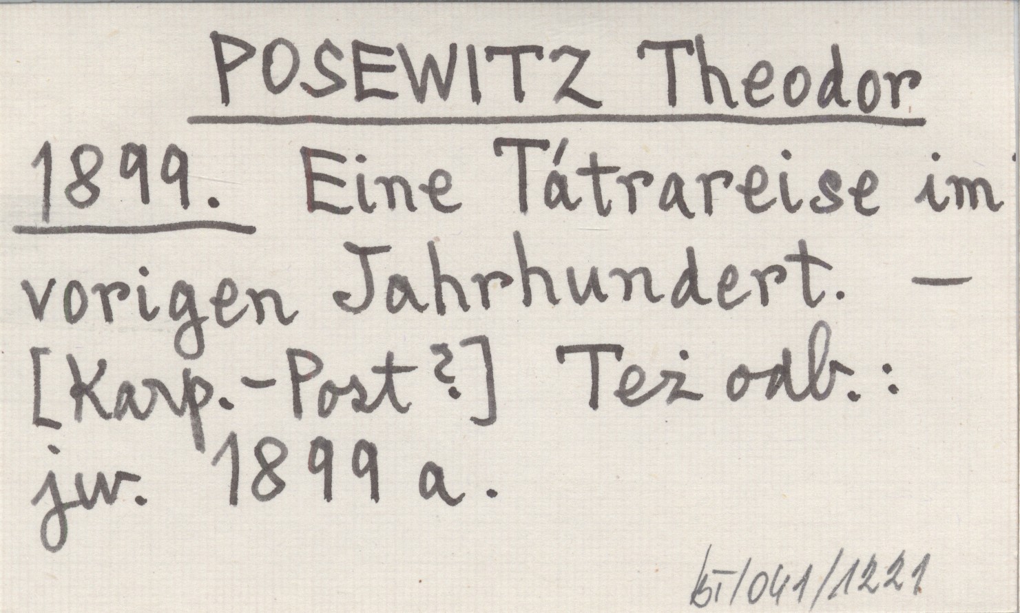POSEWITZ Theodor 1899 Eine Tátrareise im vorigen Jahrhundert.