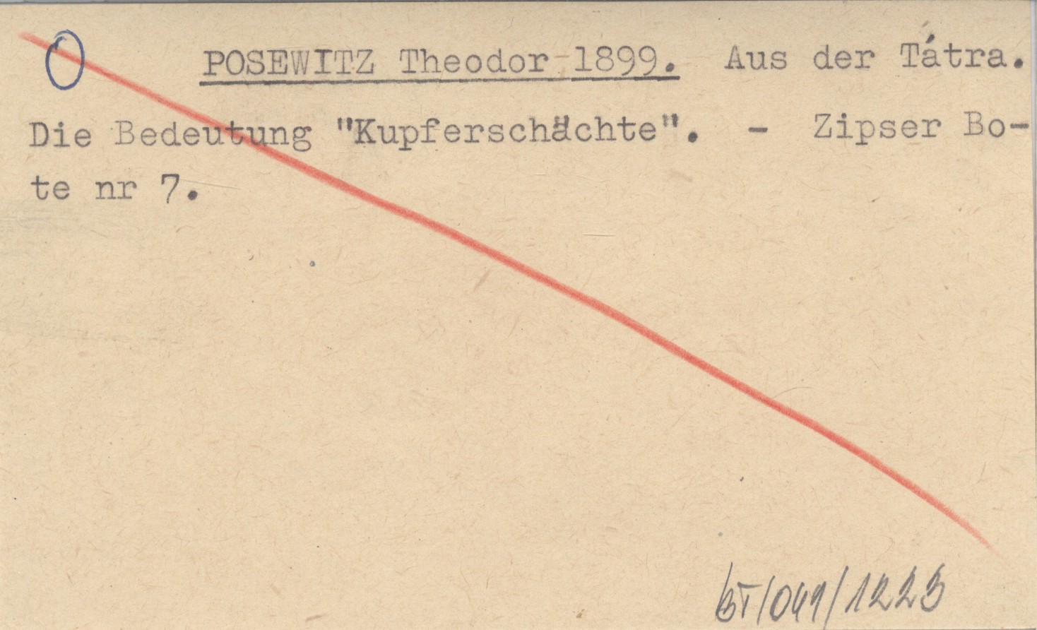 POSEWITZ Theodor 1899 Aus der Tátra. Die Bedeutung "Kupferschächte".