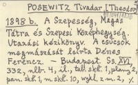 POSEWITZ Tivadar [Theodor] 1898 b A Szepesség, Magas Tátra és Szepesi Középhegység. Utazási kézikönyv. A csúcsok megmászását leira Dénes Ferencz.