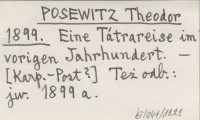 POSEWITZ Theodor 1899 a Eine Tátrareise im vorigen Jahrhundert.