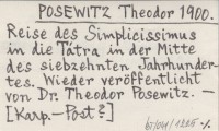 POSEWITZ Theodor 1900 Reise des Simplicissimus in die Tátra in der Mitte des siebzehnten Jahrhundertes. Wieder veröffentlicht von Dr. Theodor Posewitz.