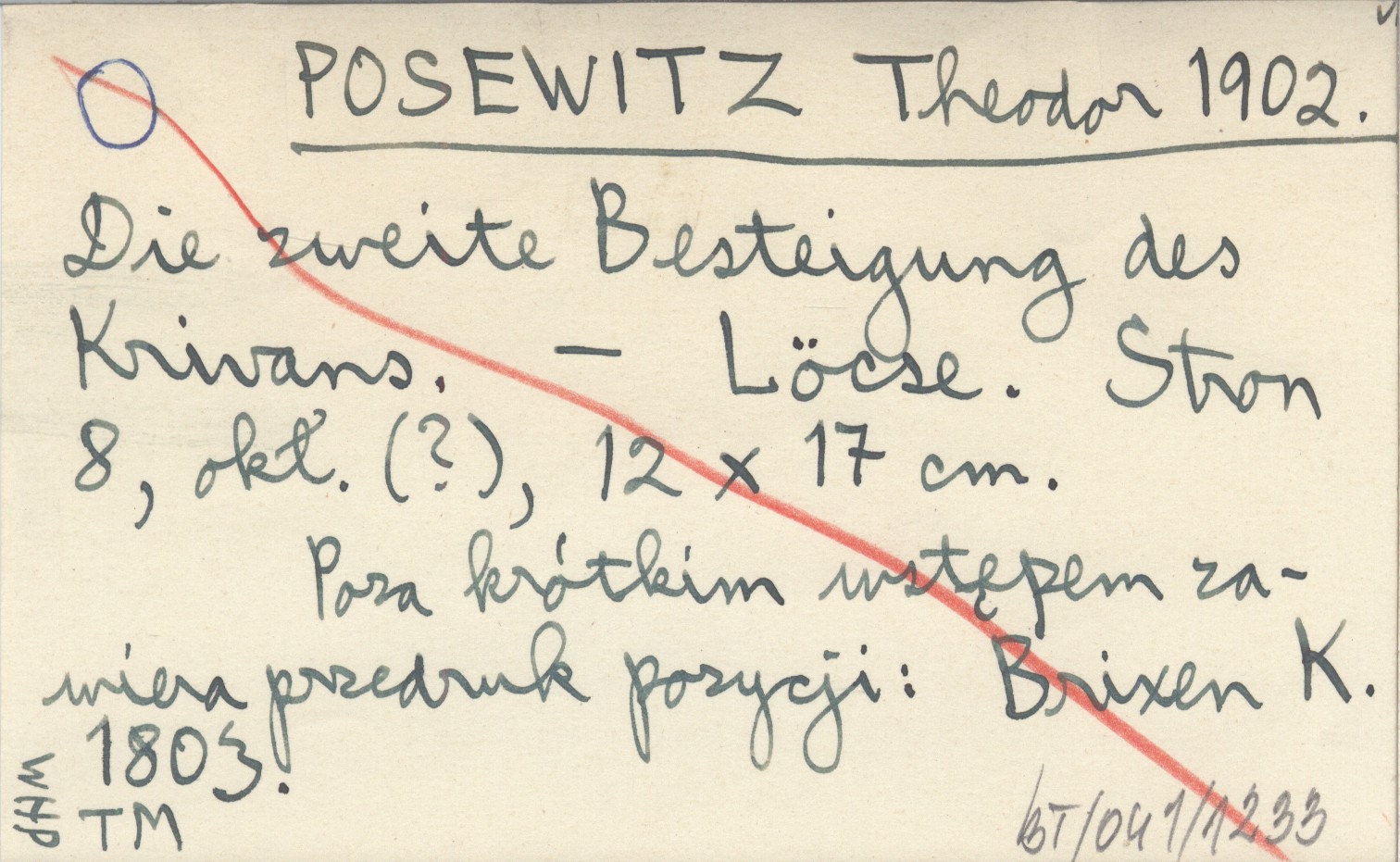 POSEWITZ Theodor 1902 Die zweite Besteigung des Krivans.