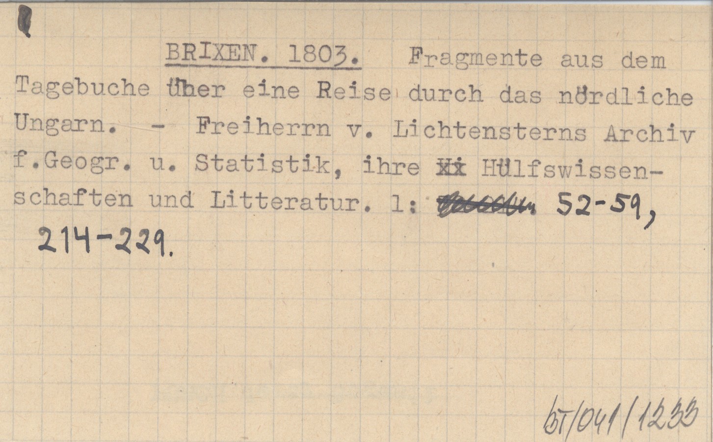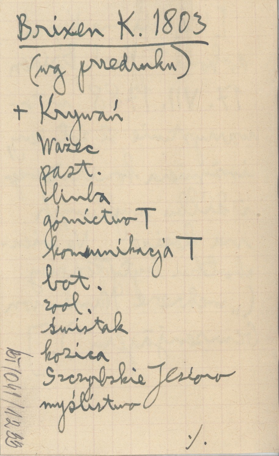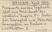 Löcse , 8 s., okł. (?), 12x17 cm. Poza krótkim wstępem zawiera przedruk pozycji: BRIXEN K. 1803