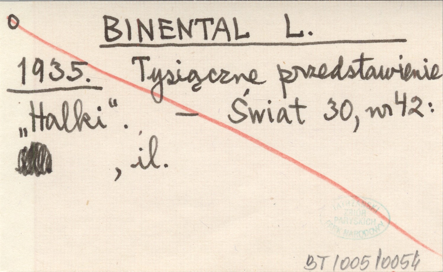 BINENTAL L. 1935 Tysiączne przedstawienie "Halki".