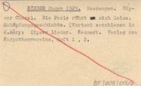 BINDER Eugen 1929 Meeraugen. Zipser Choral. Die Perle rührt sich leise. Schöpfungsgeschichte. (Vertont erschienen in J.Móry: Zipser Lieder.
