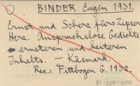 BINDER Eugen 1931 Ernst und Scherz fürs Zipser Herz. Anspruchslose Gedichte ernsteren und heiteren Inhalts.