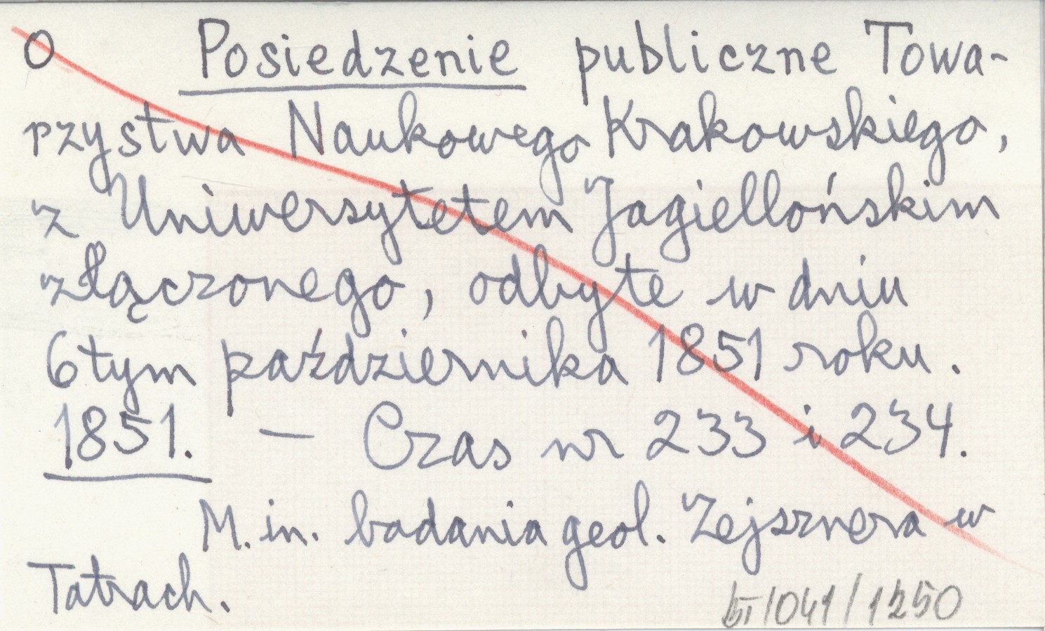 Czas, Nr 233, 234. M. in. badania geologiczne Zejsznera w Tatrach.
