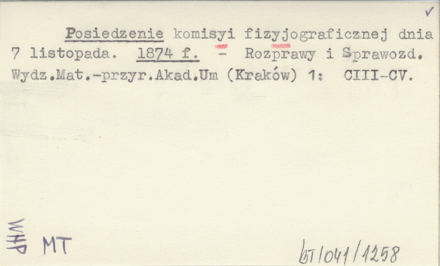 Posiedzenie komisyi fizyjograficznej dnia 7 listopada. 1874 f