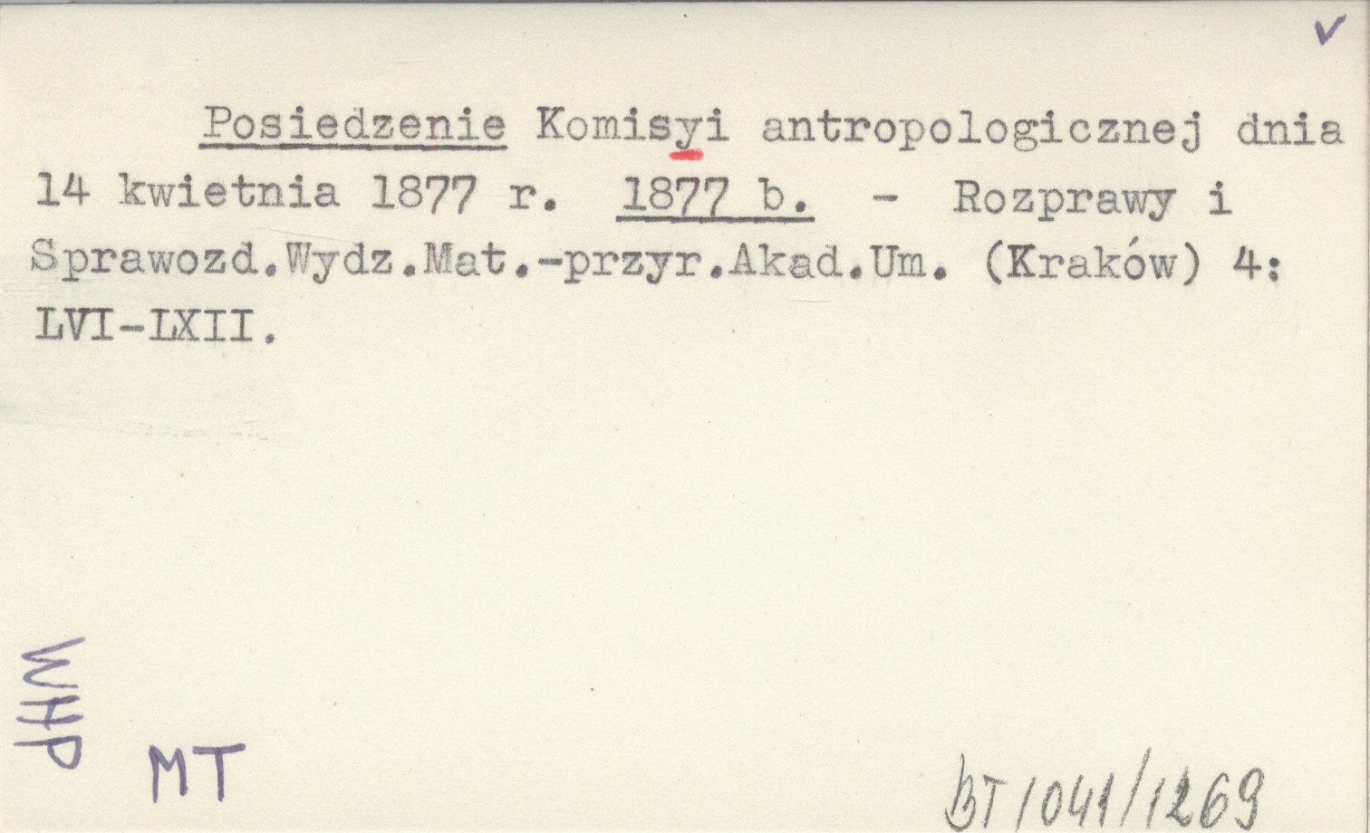 Posiedzenie Komisyi antropologicznej dnia 14 kwietnia 1877 r. 1877 b
