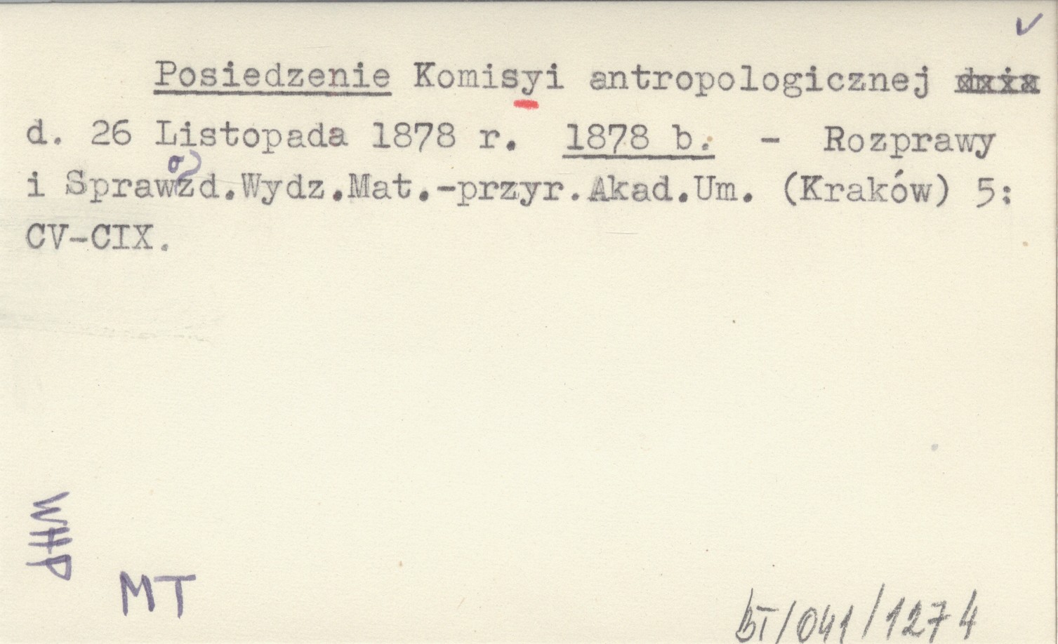 Posiedzenie Komisyi antropologicznej d. 26 Listopada 1878 r. 1878 b