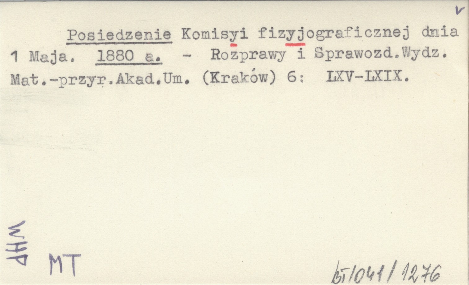 Posiedzenie Komisyi fizyjograficznej dnia 1 Maja. 1880 a