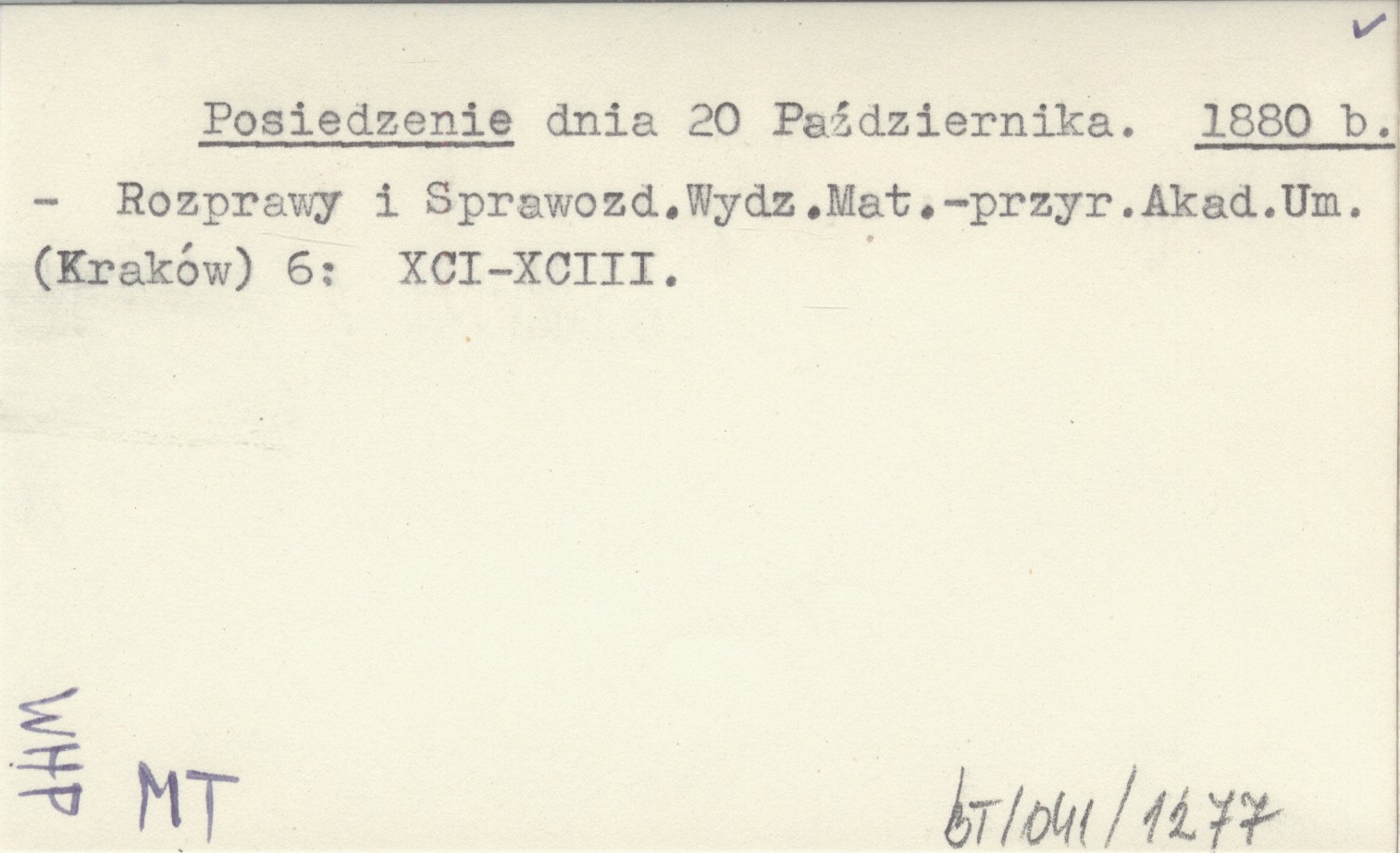 Rozprawy i Sprawozdania Wydziału Matematyczno-przyrodniczego Akademii Umiejętności (Kraków) , 6: XCI-XCIII.