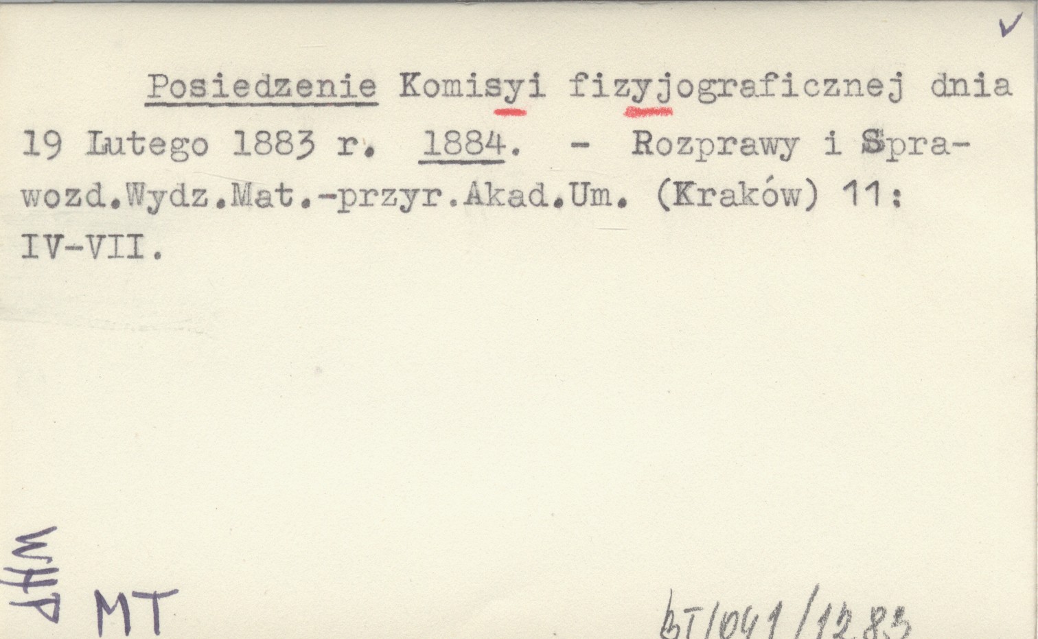 Posiedzenie Komisyi fizyjograficznej dnia 19 Lutego 1883 r. 1884