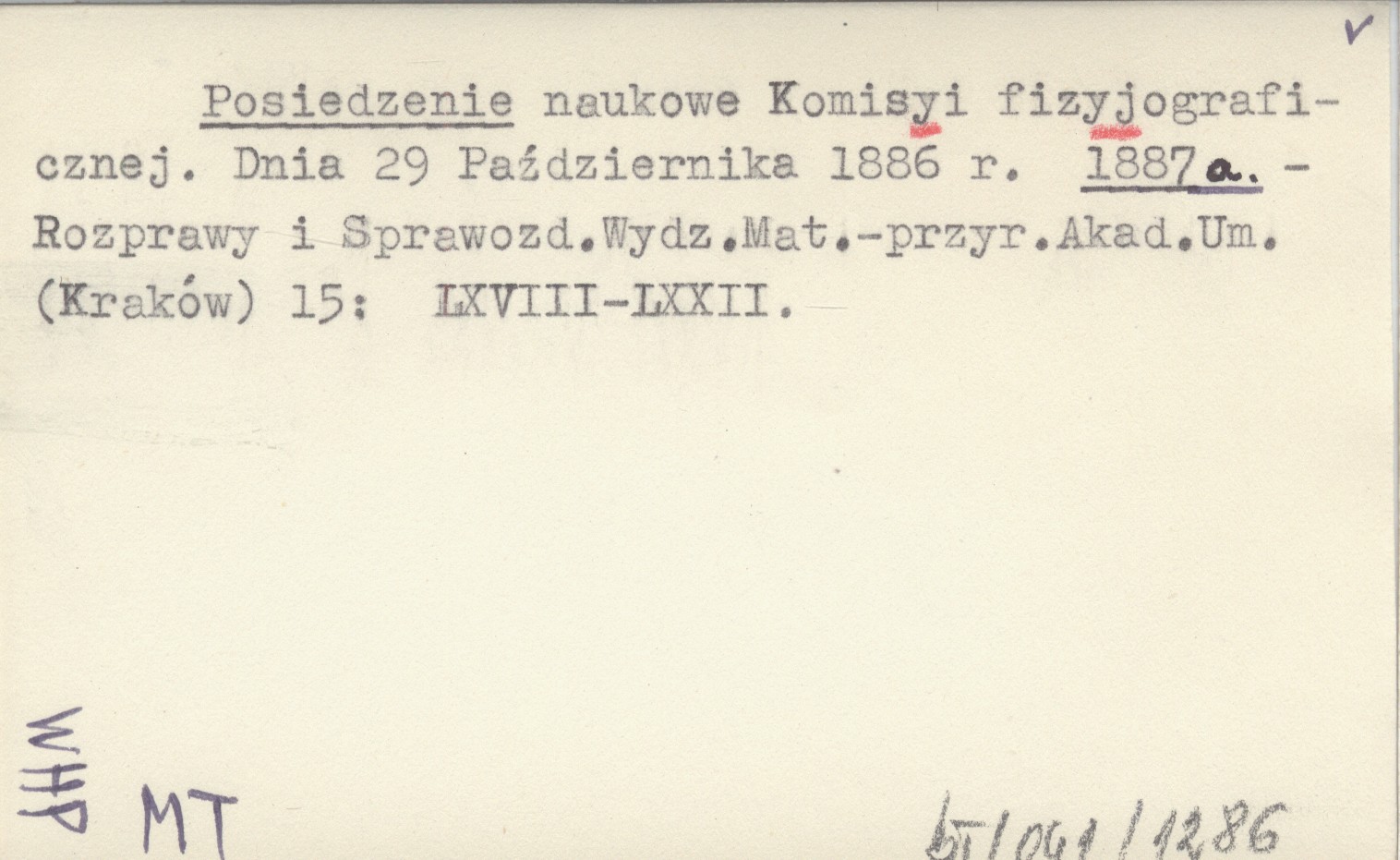 Posiedzenie naukowe Komisyi fizyjograficznej. Dnia 29 Października 1886 r. 1887 a