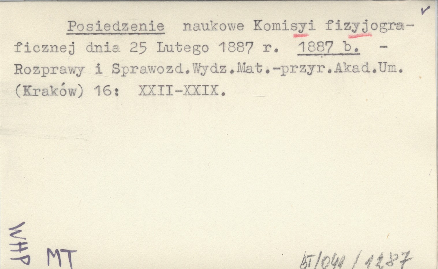 Posiedzenie naukowe Komisyi fizyjograficznej dnia 25 Lutego 1887 r. 1887 b