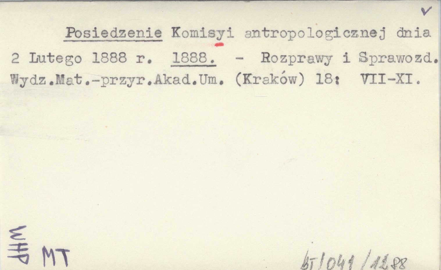 Posiedzenie Komisyi antropologicznej dnia 2 Lutego 1888 r. 1888