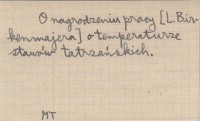 Sprawozdania z Posiedzeń Akademii Umiejętności (Kraków) , R. 1894, druk 1895, Wydział III: 17. O nagrodzeniu pracy [L. Birkenmajera] o temperaturze stawów tatrzańskich.