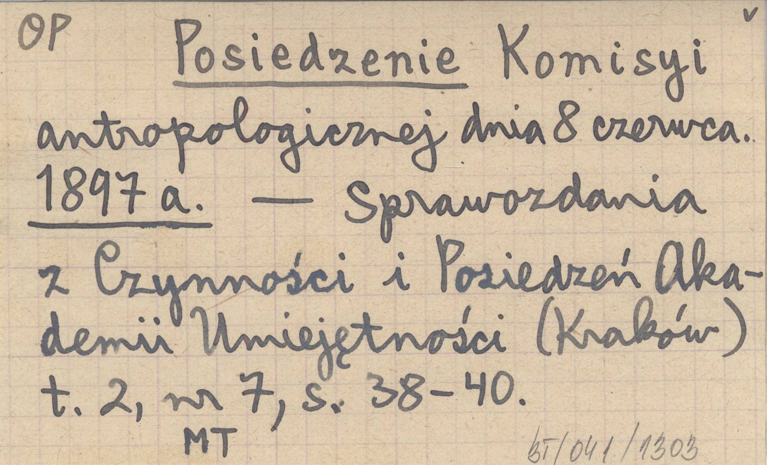 Posiedzenie Komisyi antropologicznej dnia 8 czerwca. 1897 a