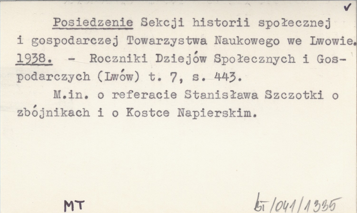 Roczniki Dziejów Społecznych i Gospodarczych (Lwów) , T. 7: 443. M. in. o referacie Stanisława Szczotki o zbójnikach i o Kostce Napierskim.