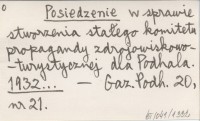 Posiedzenie w sprawie stworzenia stałego komitetu propagandy zdrojowiskowo-turystycznej dla Podhala. 1932...
