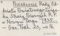 Posiedzenie Rady Oddziału Powiatowego Związku Straży Pożarnych R.P. w Nowym Targu. 1935...