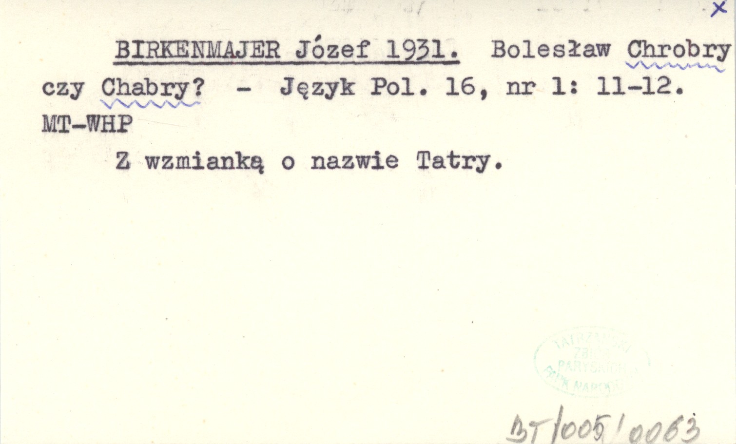 Język Polski, 16, nr 1: 11-12. Z wzmianką o nazwie Tatry.