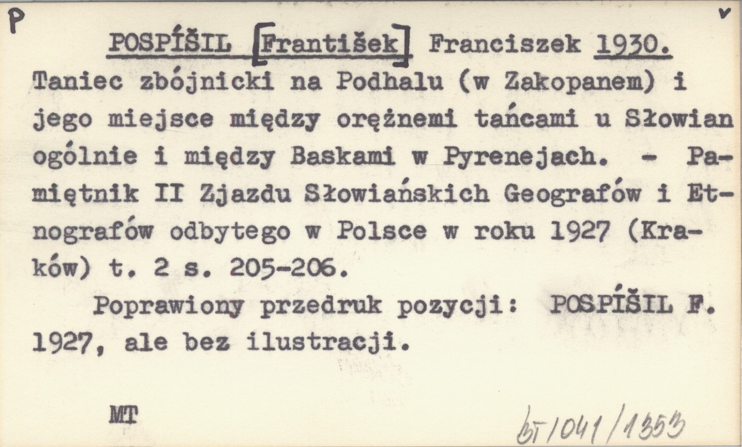 Poprawiony przedruk pozycji: POSPͩIL F. 1927, ale bez ilustracji.