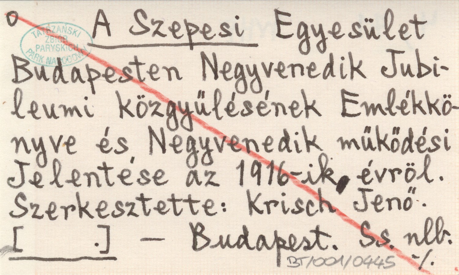 A Szepesi Egyesület Budapesten Nagyvenedik Jubileumi közgyülésének Emlékkönyve és Negyvenedik müködési Jelentése az 1916-ik évröl. Szerkesztette: Krisch Jenö".