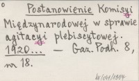 Postanowienie Komisyi Międzynarodowej w sprawie agitacyi plebiscytowej. 1920...
