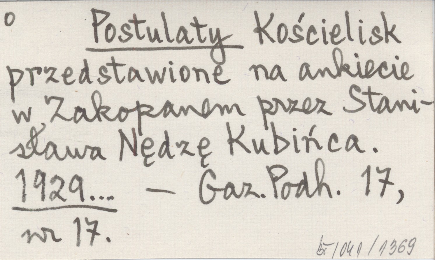 Postulaty Kościelisk przedstawione na ankiecie w Zakopanem przez Stanisława Nędzę Kubińca. 1929...
