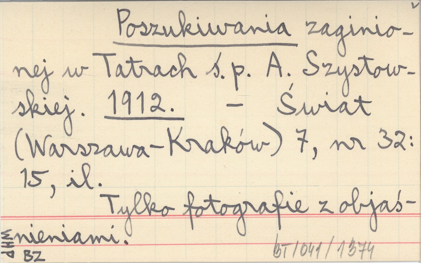 Poszukiwania zaginionej w Tatrach ś.p. A. Szystowskiej. 1912